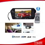 This rearview mirror monitor, with advanced IR remote control and touching screen technology, conveniently easy your operation. When you are backing your car, the scenes will be cut to rearview camera automatically. It supports bluetooth function, MP5 and FM transmitter. With NTSC and PAL video system, it can play the video or audio files, enjoy HD music or movies.